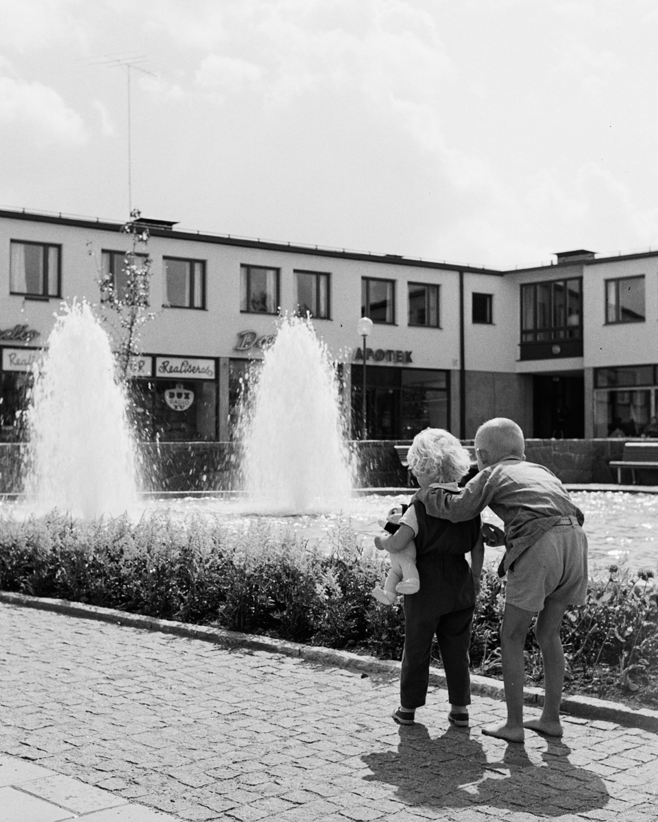 Två barn vid fontän