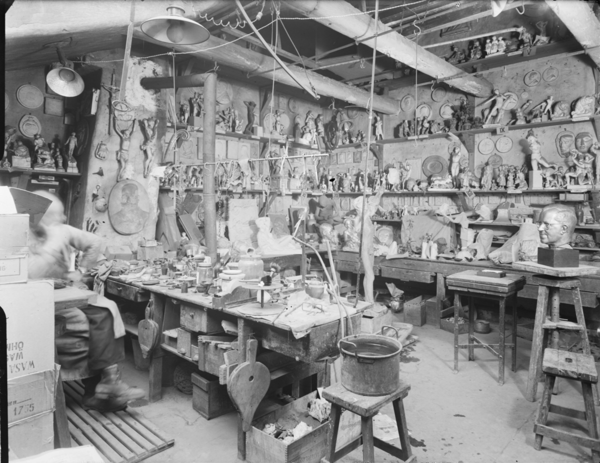 Byst föreställande överingenjör Alex Engblom, Borås av professor Nils Sjögren i gjuteriverkstaden.