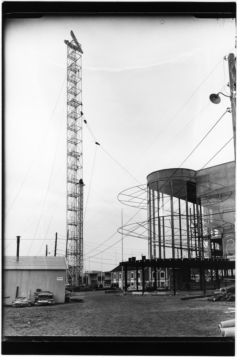 Exteriör. Masten och restaurang Paradiset under uppförande