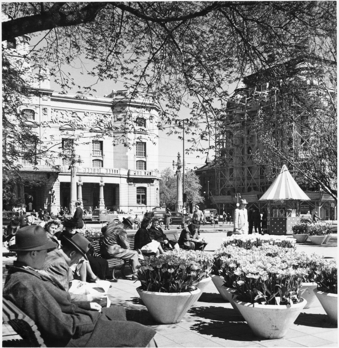 Exteriör Vy mot Dramaten Människor på parkbänkar