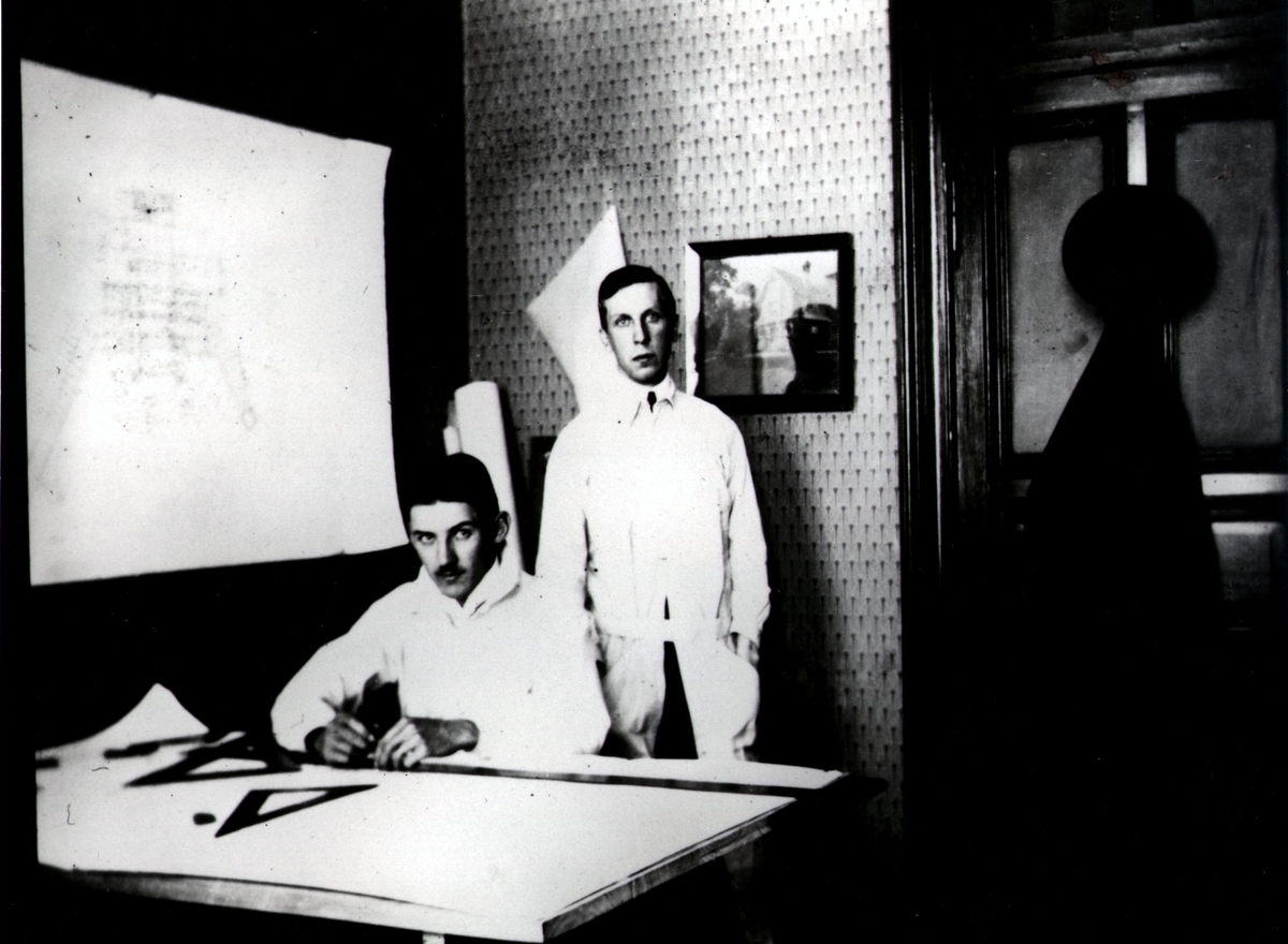 Sigurd Lewerentz sittande vid ritbord.