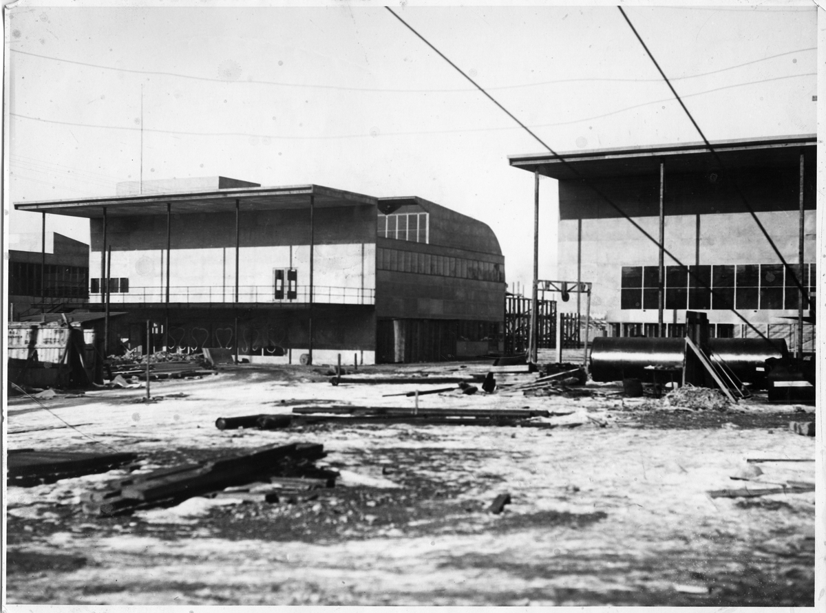 Hall för bokkonst och grafisk industri med Dagens Nyheters terass under uppförande
