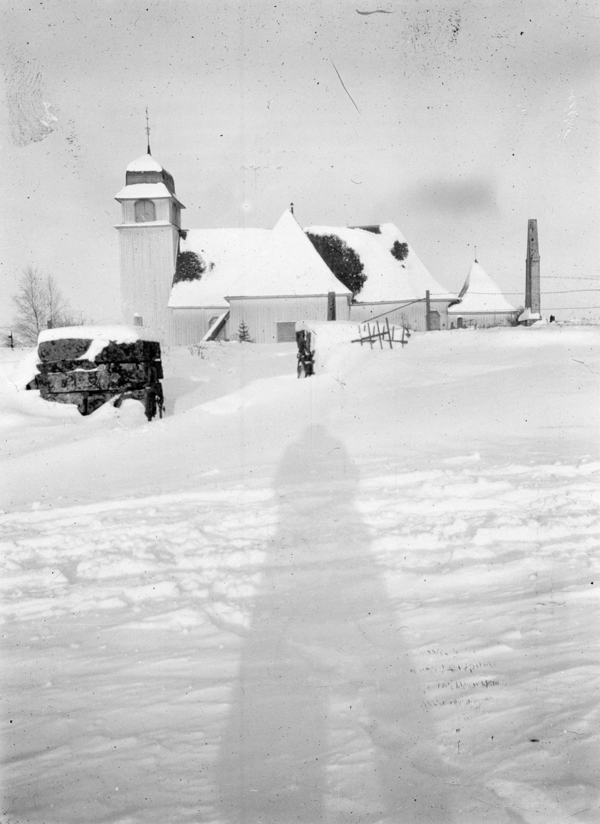 Titel: Oidentifierad kyrka Vinterlandskap Exteriör