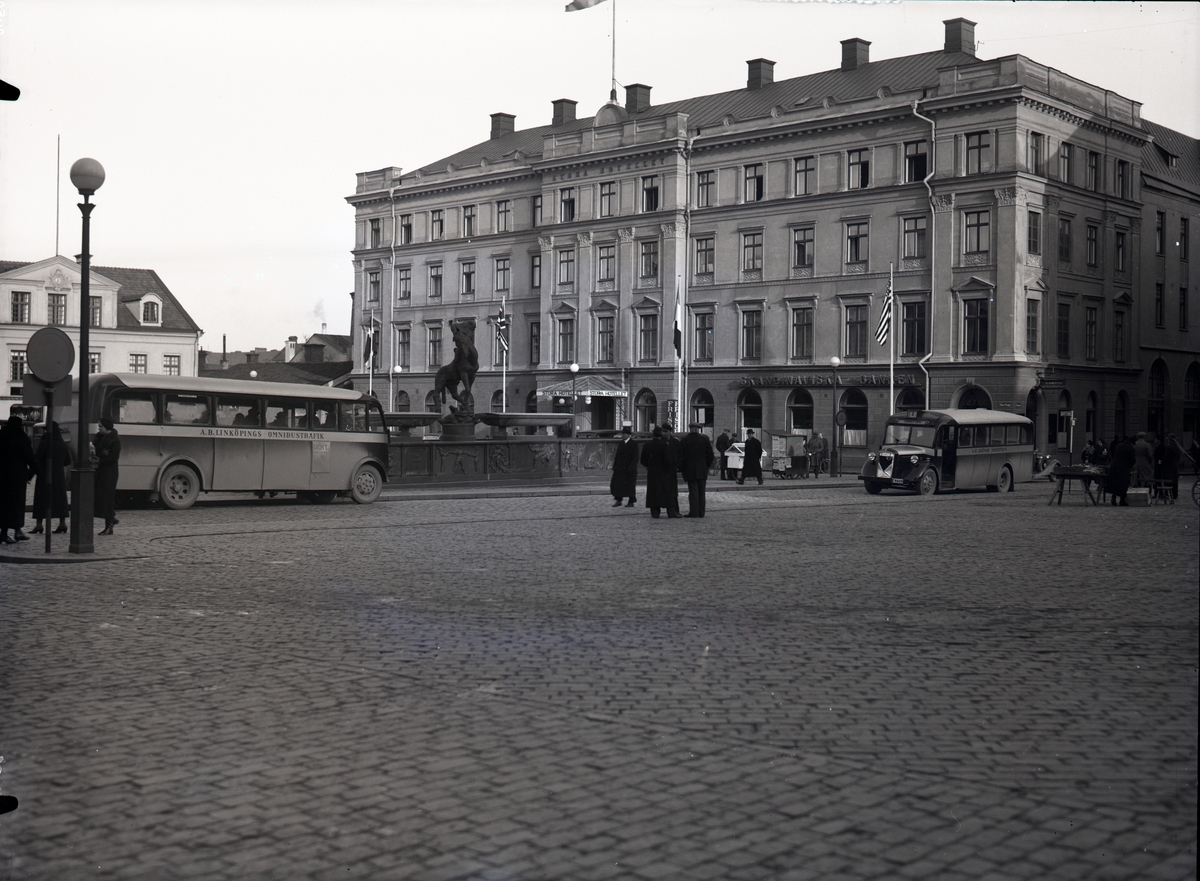 Orig. text: Linköpings Omnibuss A.B. Hållplatserna vid Stora torget o. Köttorget.