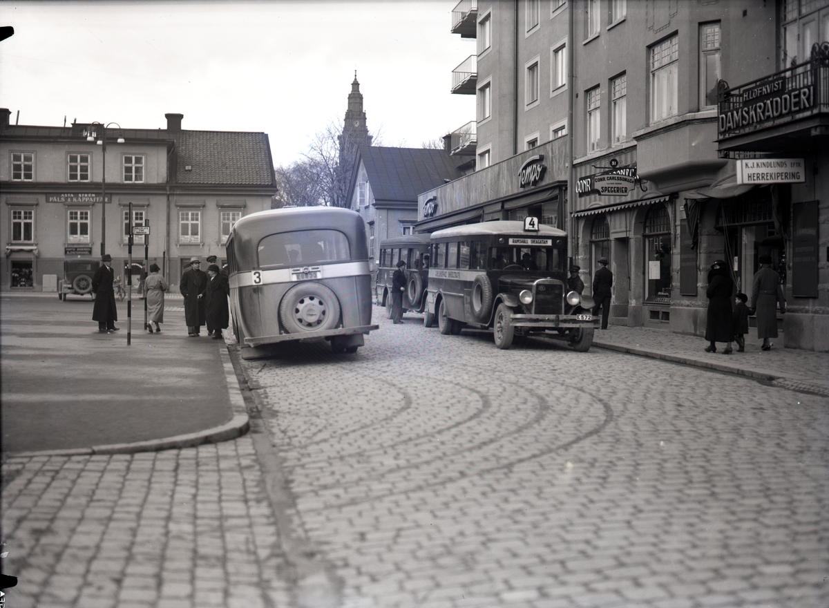 Orig. text: Linköpings Omnibuss A.B. Hållplatserna vid Stora torget o. Köttorget.