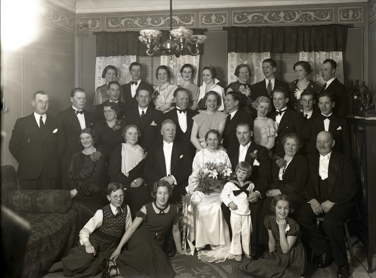Orig. text: 12 april. Brudparet Folke Eliasson, grupp. Taget hos Wall Snickaregatan.