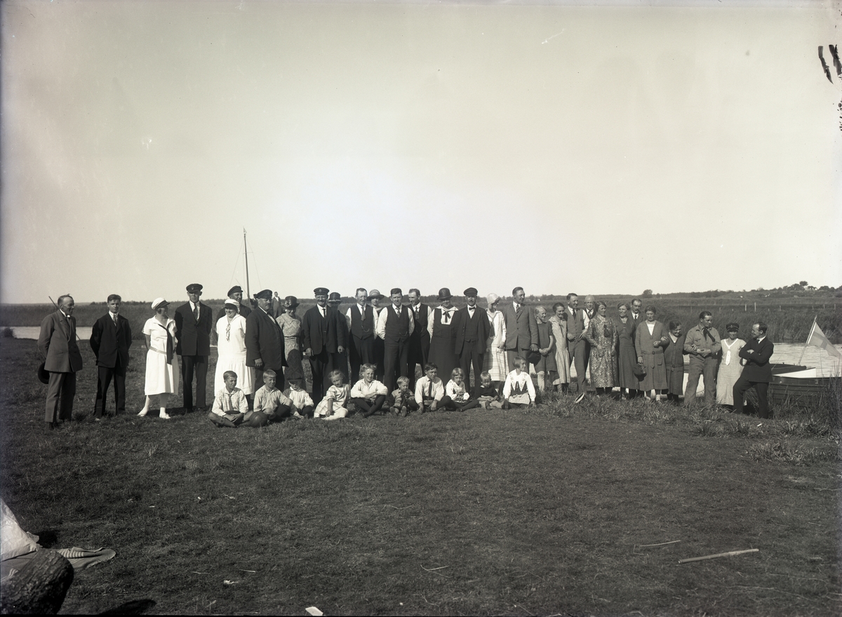 Gruppbild, taget utomhus. Troligen vid Stångån.