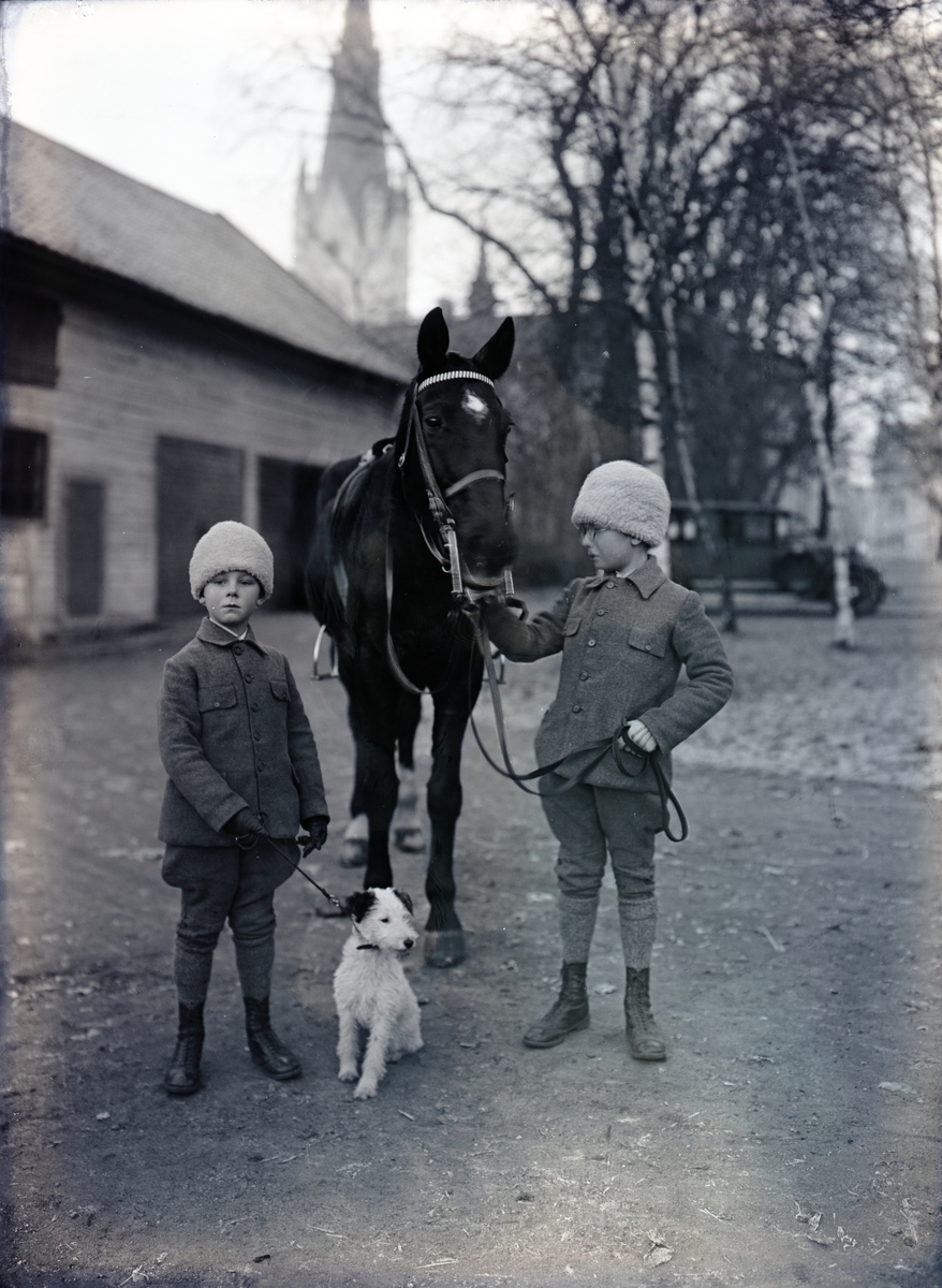 Orig. text: Bankdir. Brolén, S:t Larsgatan 47. Gossarna med hästen.