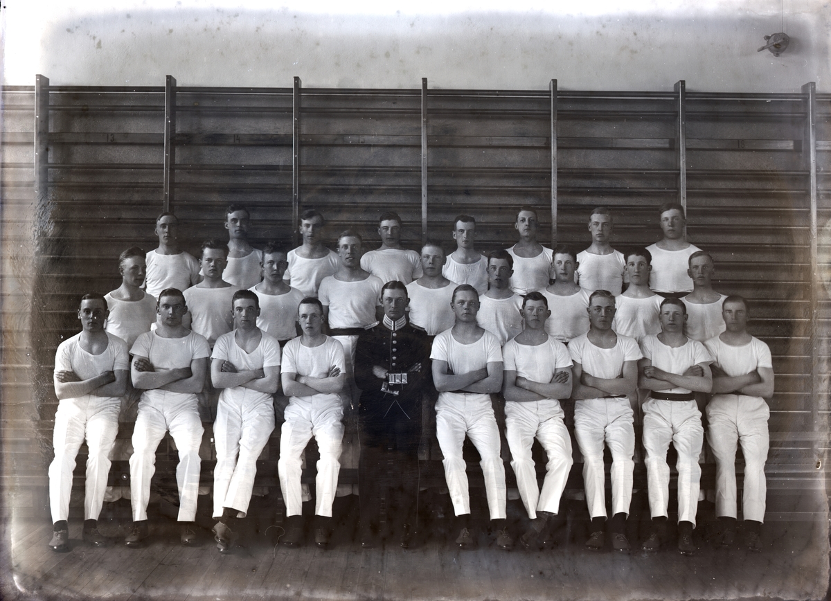 Gruppbild av militärer. Gymnastikklädda.