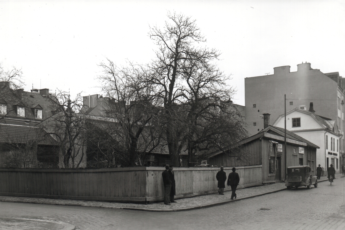 Kortet är taget i hörnet Nygatan- Apotekaregatan. Gatan som löper till höger är Nygatan och den som går till vänster är Apotekaregatan. En av affärerna på Nygatan är en fiskaffär.
