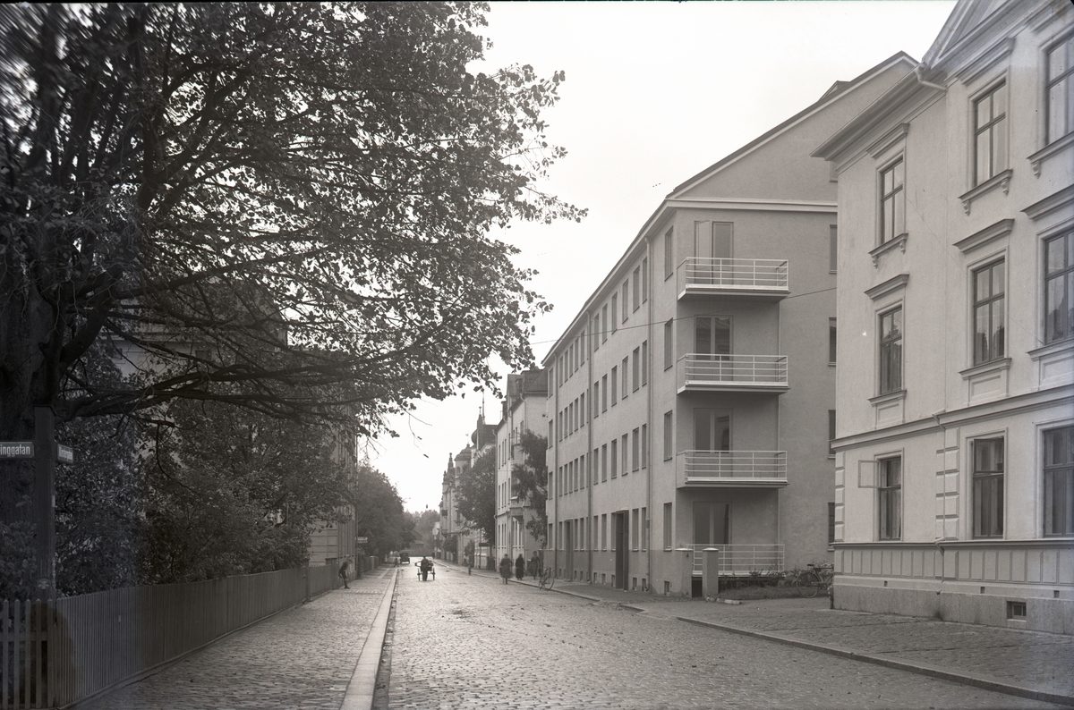 Orig. text: 25 aug. Ing. Sandberg. Nya huset Klostergatan 50.