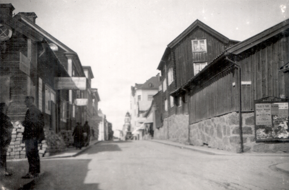 Orig. text: Nygatan från Klostergatan mot Bokhållaregatan.