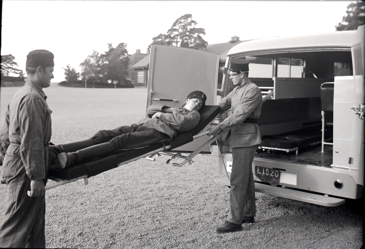Orig. text: 7 okt. Bussavdelningen. Ambulansbil tagen vid T.1. Verkstäderna.