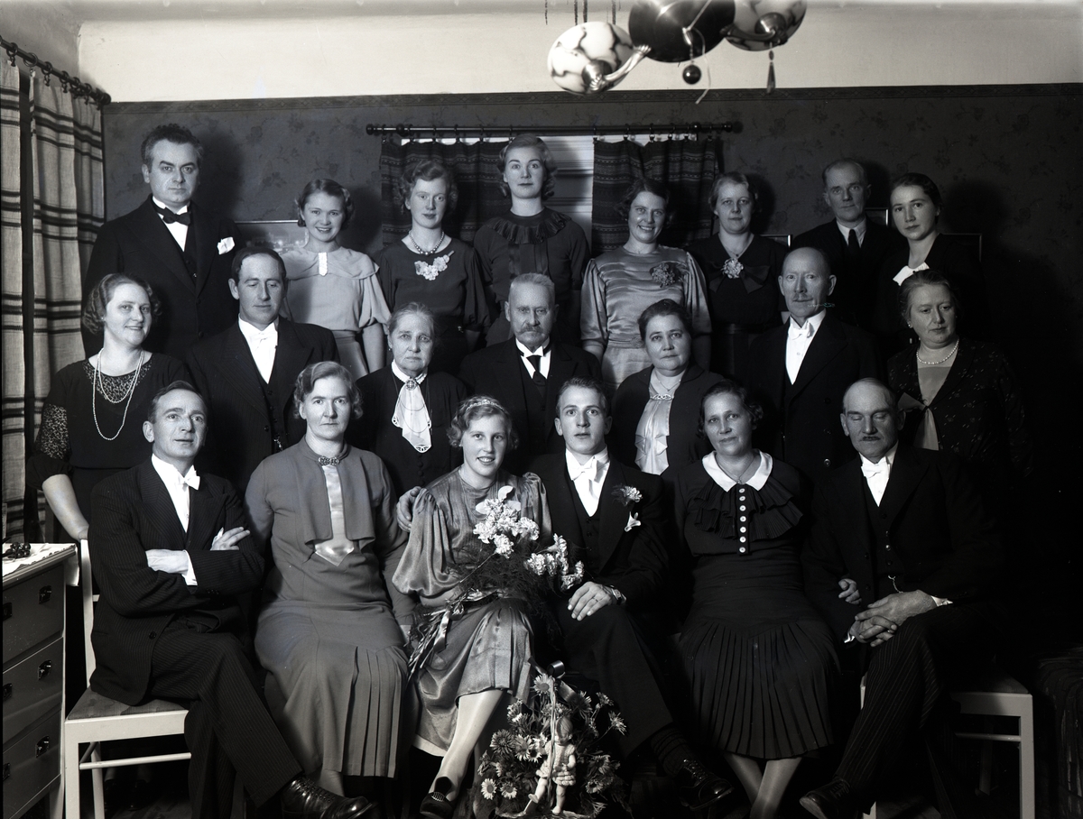 Orig. text: Brudparet Lundin 17 okt, grupp, taget hos Tonström Badhusgatan 4.
