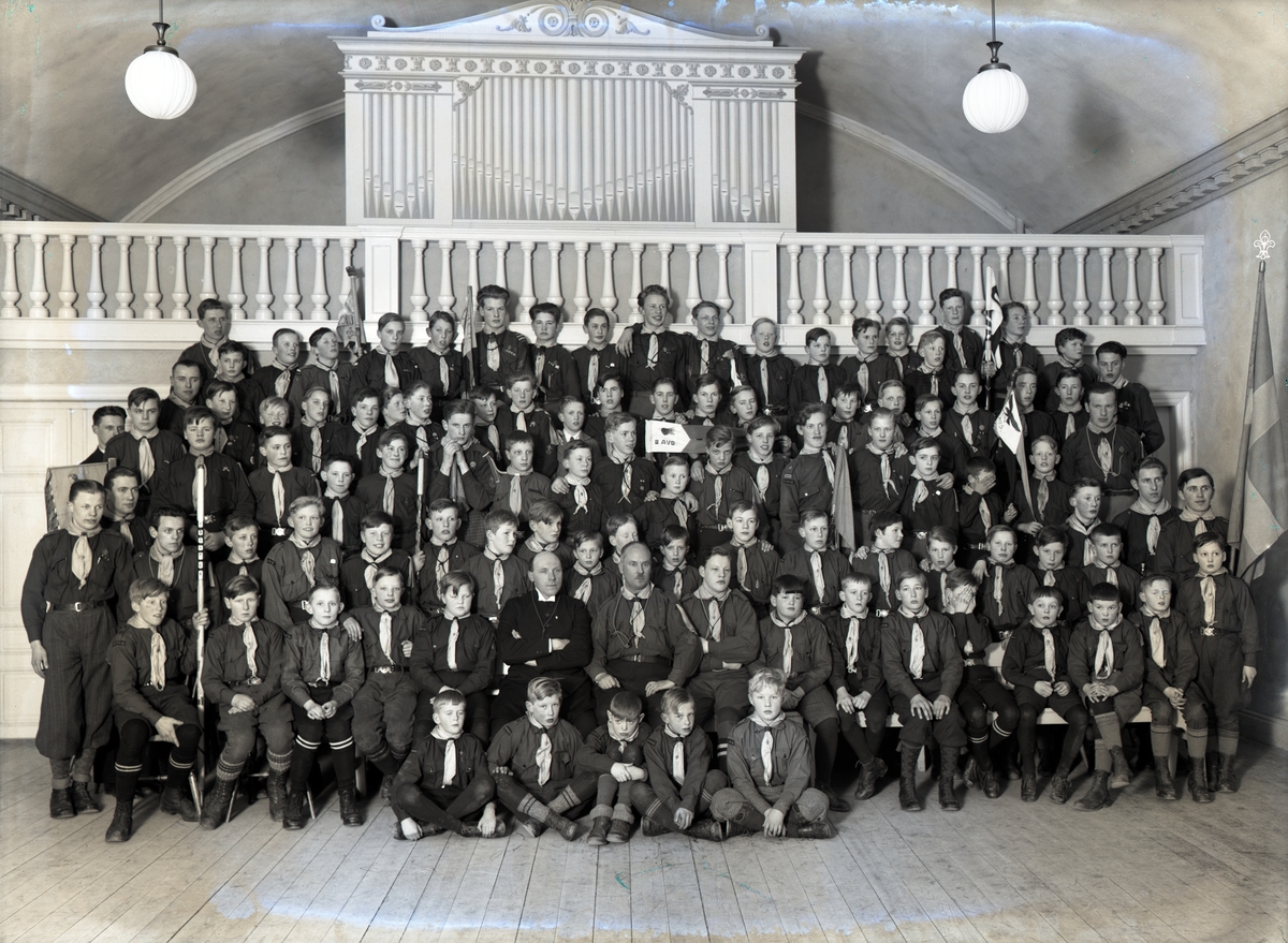 Orig. text: Domkyrkans scoutkår på församlingssalen.