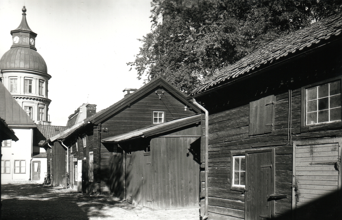 Baksidan, innergården till trähusen som låg längs S:t Larsgatan ner mot Storgatan.