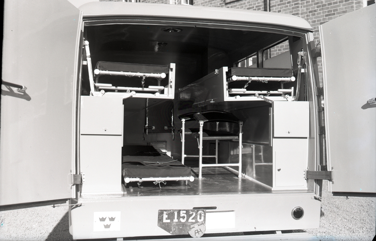 Orig. text: 7 okt. Bussavdelningen. Ambulansbil tagen vid T.1. Verkstäderna.