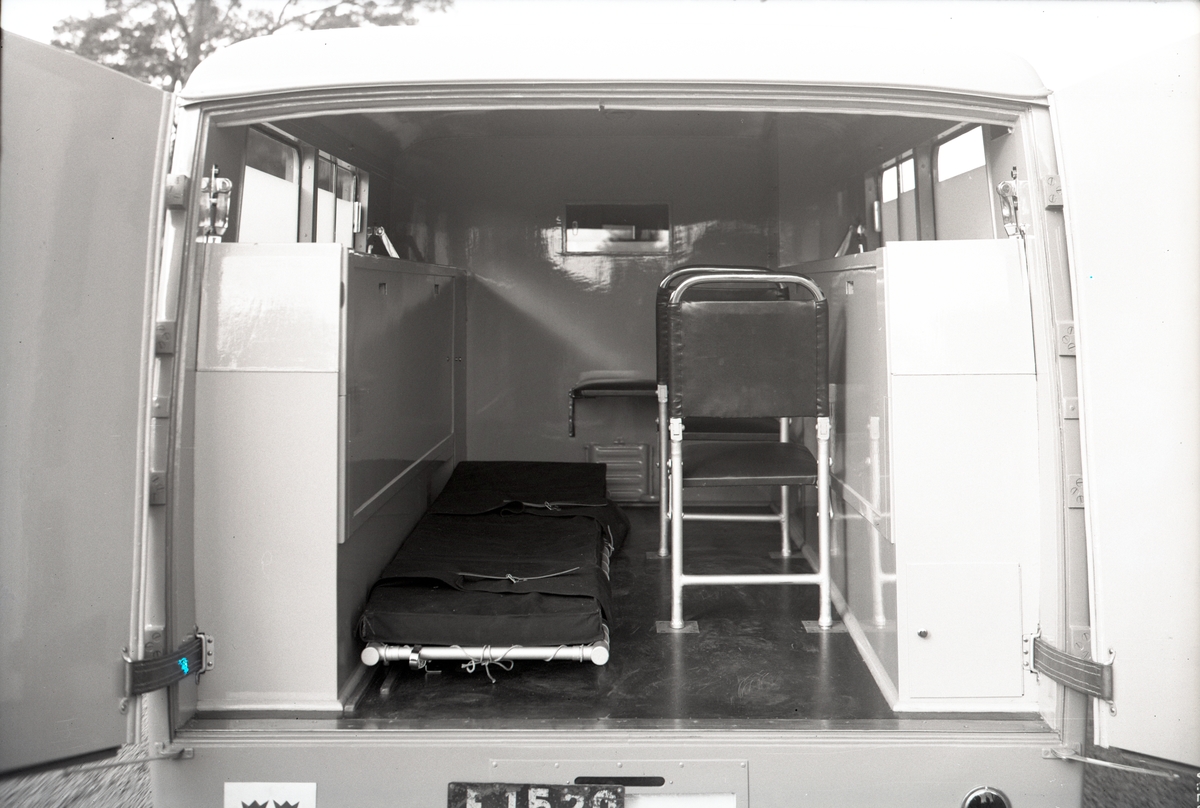 Orig. text: 7 okt. Bussavdelningen. Ambulansbil tagen vid T.1. Verkstäderna.