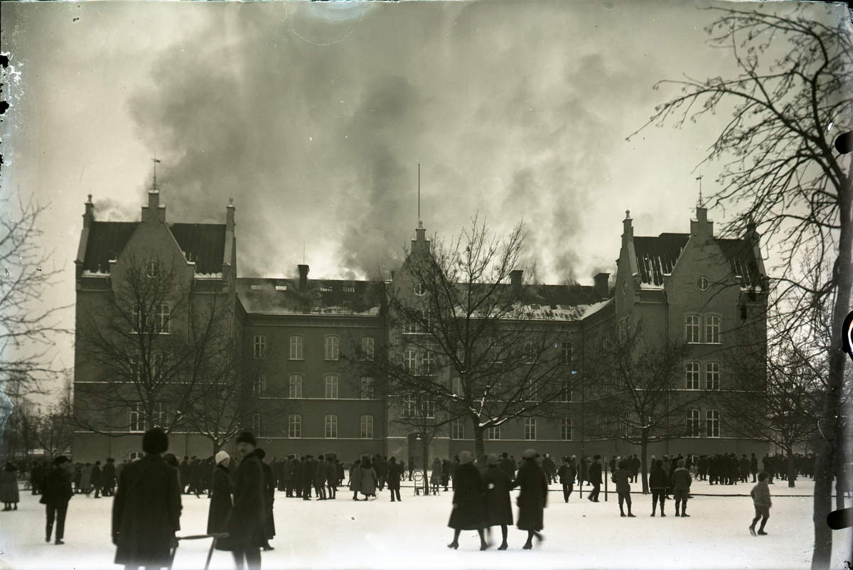Orig. text: Linnéskolan brinner 22 feb. 1923.