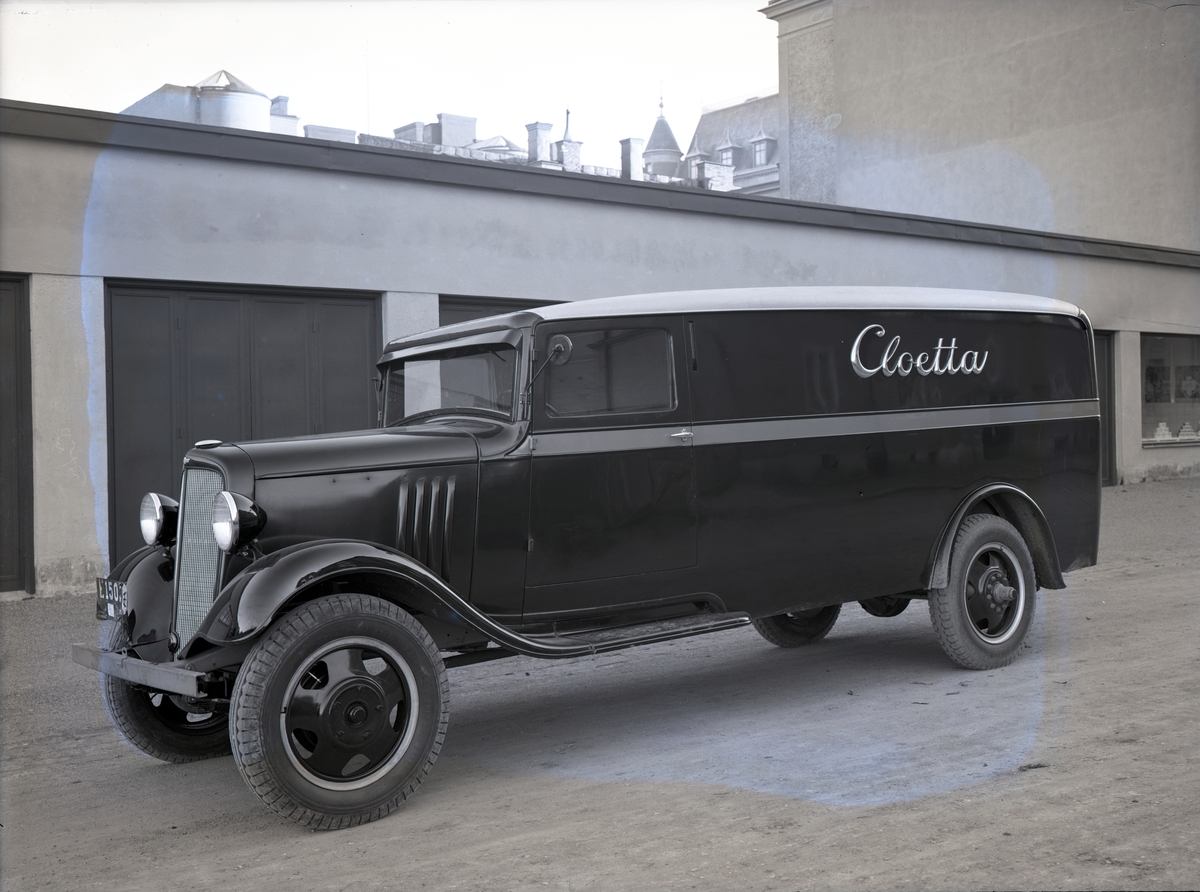 Orig. text: Adolf Söderbergs Bilaffär 16 nov. Cloetta skåpvagn Platensgatan 6.