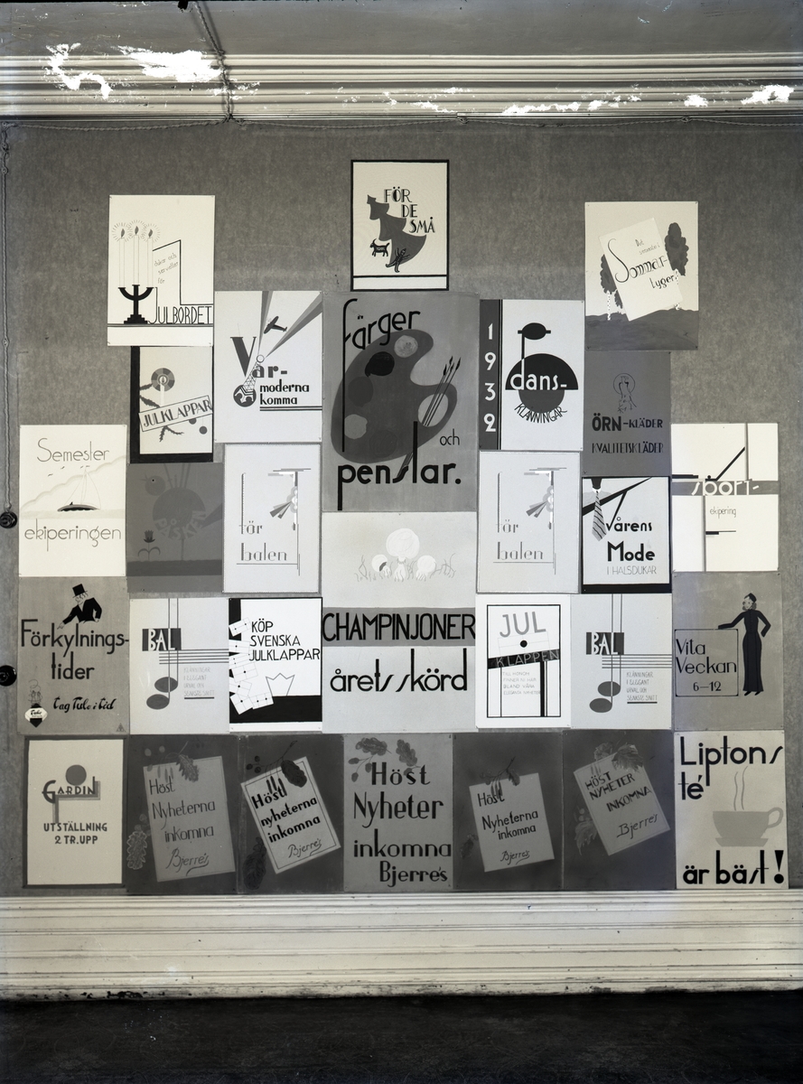 Orig. text: 8 maj. Handelsinstitutet. Plakat på väggarna