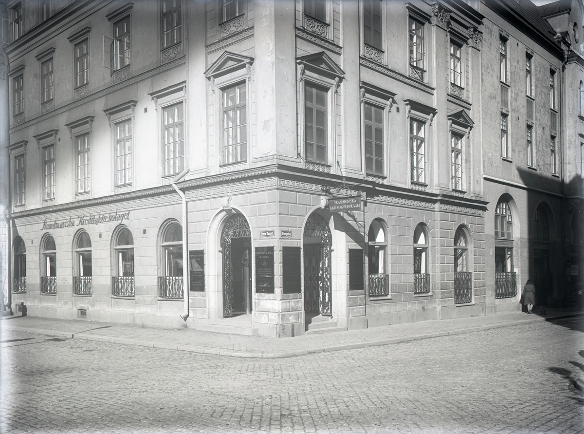 Skandinaviska Banken ligger i Stora hotellets byggnad, hönet med Storgatan.