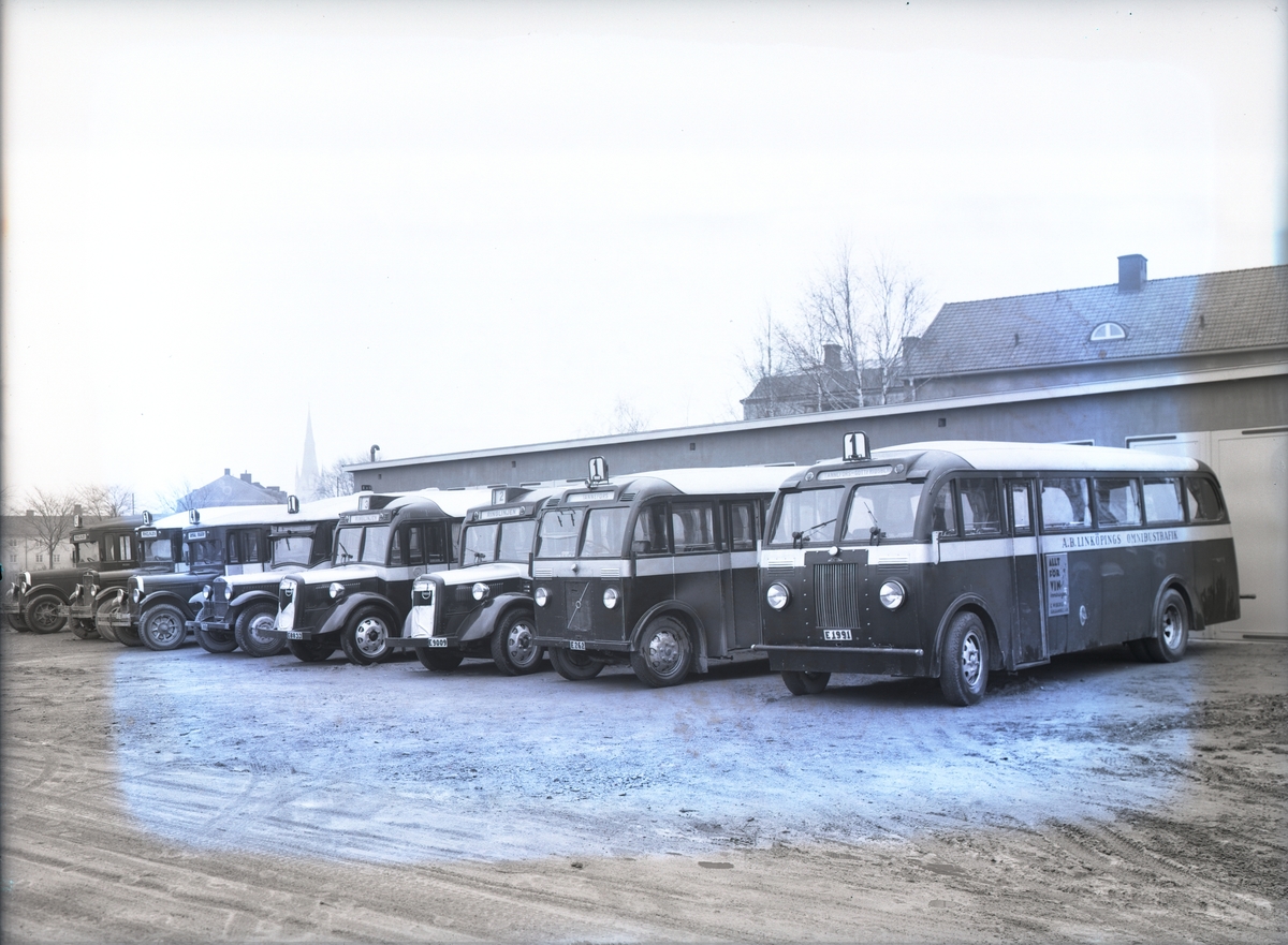 Orig. text: nov 8. Linköpings Omnibuss A.B. 1 pl. 8 bussar, 1 pl. personalen.