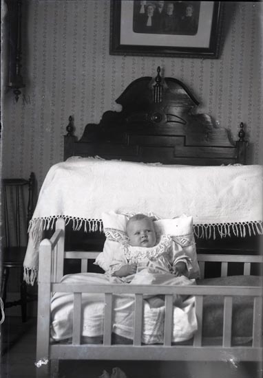 Johan Olssons barn, Solhagen (under Cederslund) sittande i en barnsäng
