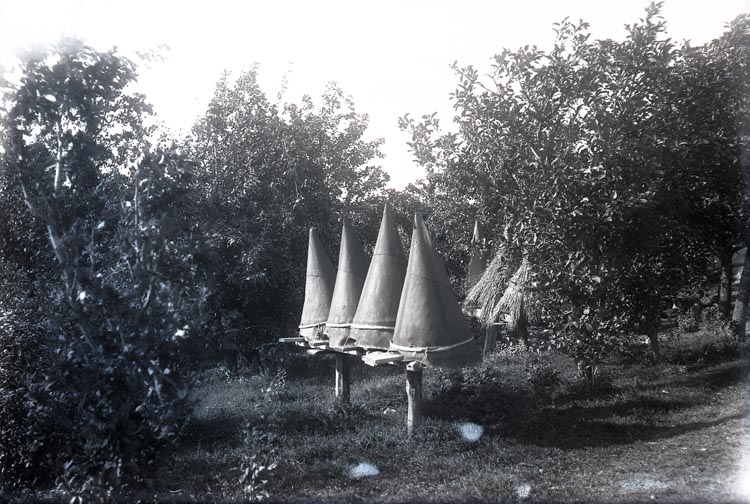 Titel: Sju bikupor i Nils Hermanssons trädgård, Hästeryr, Skredsvik.