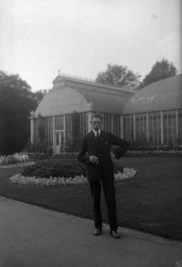 Man som står framför Palmhuset i Trädgårdsföreningen, Göteborg