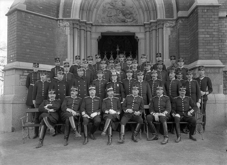 Enligt fotografens noteringar: "Grupp af officerare vid Kungl. Svea Lifgarde 1910 Stockholm."