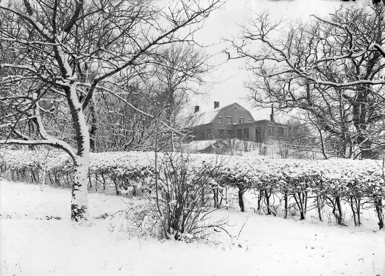 Enligt fotografens noteringar: "Foss prästgård från omkring från 1900 tiden. Småbild. Häcken numera afhuggen."