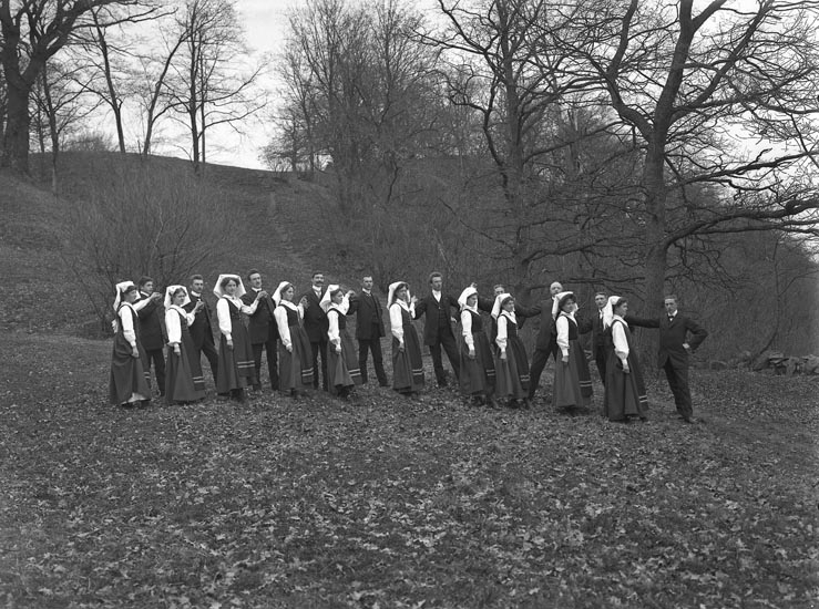 Enligt fotografens noteringar: "Folkdanslag f - Munkedal år 1910?"