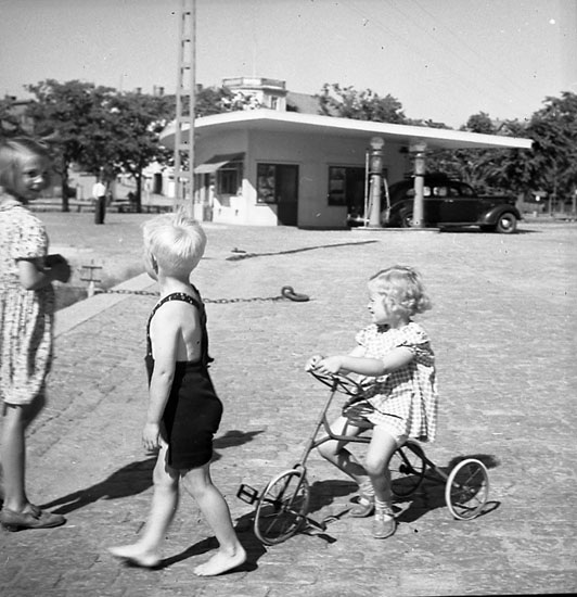 Tre barn på en kaj i Norra Hamnen vid Badhusgatan i Strömstad.