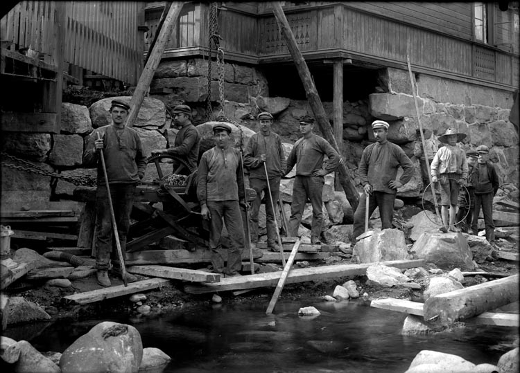 Enligt fotografens noteringar: "Munkedals arbetare omkring 1915."