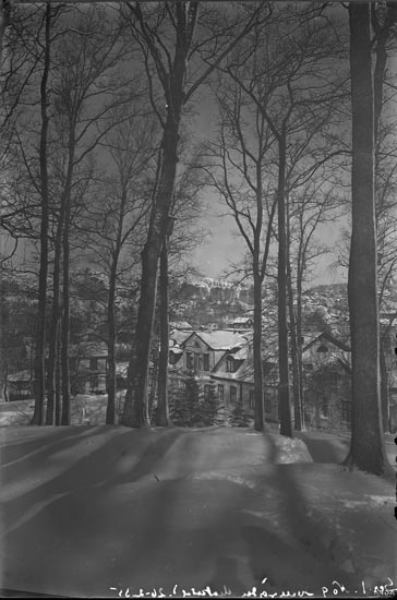 Text på emulsionssidan (Det är orsaken till att texten är spegelvänd): " Serie 1. No. 9 Herrgården Munkedal! 26-02-35".