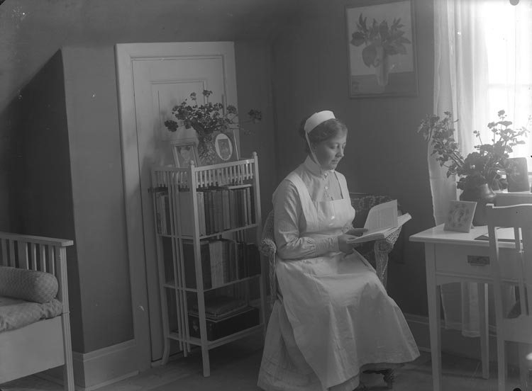 Enligt fotografens noteringar: "Syster Ebba anställd vid Munkedals bruk. "Fick reumatism och blev så gott som invalid."