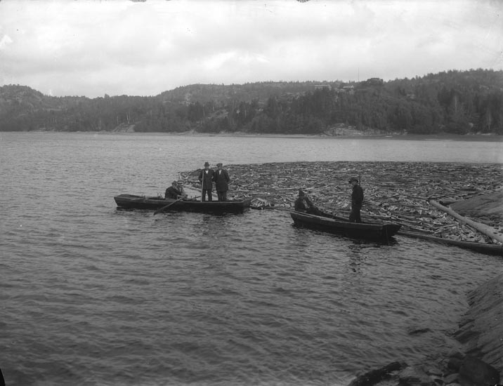 Enligt fotografens noteringar: "Timmerflottning 1914. Sjön Kärn."