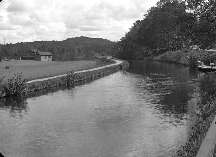 Enligt fotografens noteringar: "Munkedals Kanal till fabriken från Bjärid."