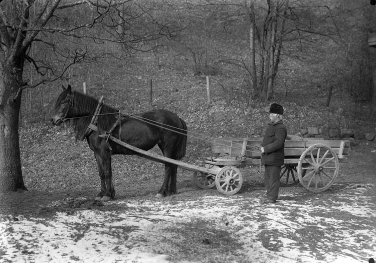 Enligt fotografens noteringar: "Gubben Ståhl Åsen, Sörbygden. Vedutkörare till fotograf Selma Sahlberg med ved."