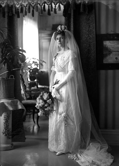 Enligt fotografens noteringar: "Fru Hafström f. Carlander som brud."