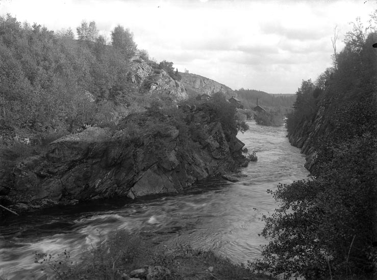 Enligt fotografens noteringar: "1919 Parti Klåfvan Brålands kvarn, i bakgrunden. Örekilsälfven."