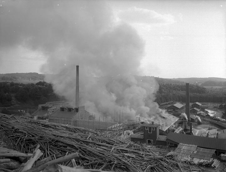 Enligt fotografens noteringar: "Eldsvåda i Munkedals fabrik omkring 1911."
