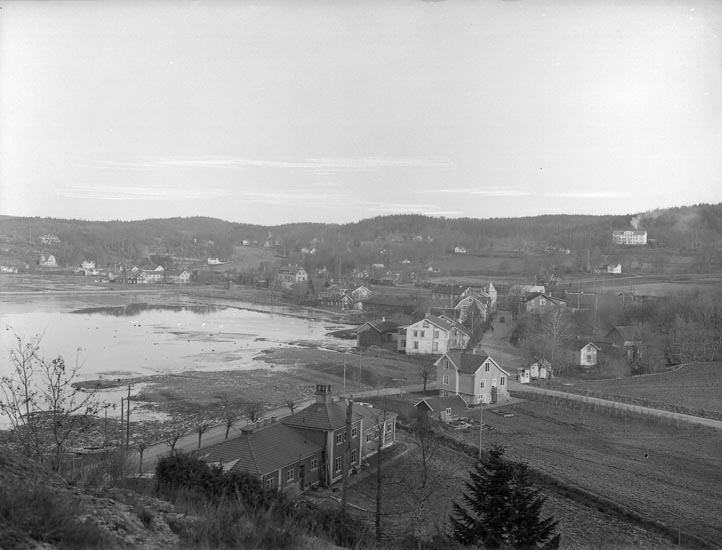 Enligt fotografens noteringar: "Taget 1928. Västkustens Ungdomskola i bakgrunden Ljungskile."