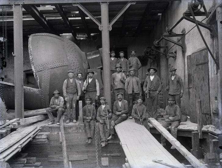 "Arbetare i Munkedals fabrik. Omkring 1930."
