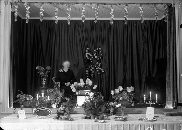 Enligt fotografens anteckningar: "1938, 81. Lärarinnan Elin Gerdes 60 års-dag".