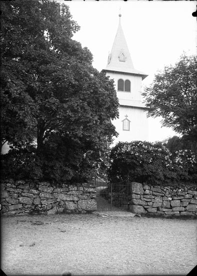 Enligt fotografens anteckningar: "Foss kyrka omkring 1900-talet. Den gamla grinden. Senare vit port".