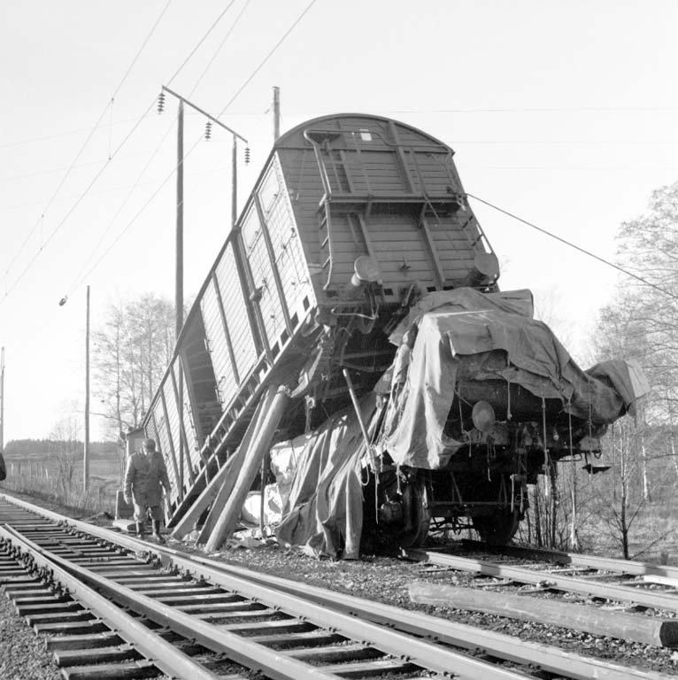 Tågurspårning i Öxnered utanför Vänersborg den 7 januari 1960