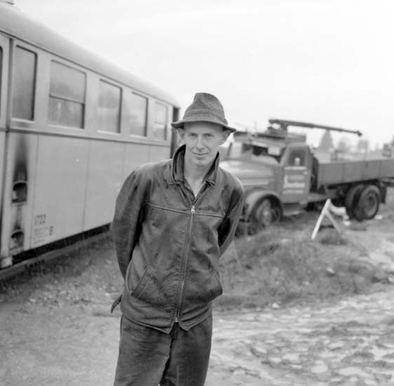 Titel: Enligt notering: "Järnvägsolycka Rälsbuss - B 12 Grävskopa 22/10 -59".