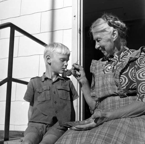 Enligt notering: "Anna Jönsson med jordgubbar 24/9 -59".